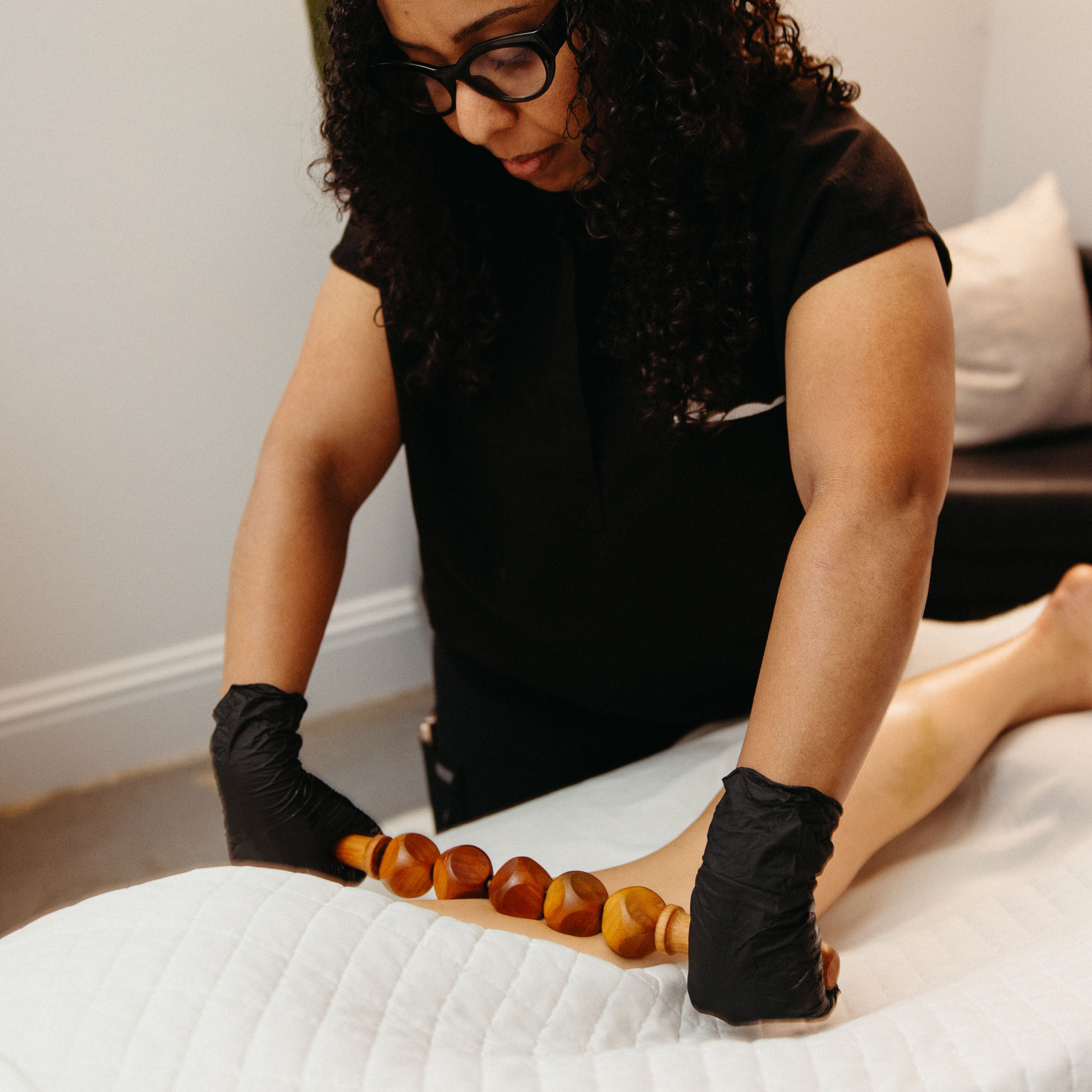 Wood therapy is a body treatment that utilizes specially designed wooden tools to massage and stimulate the skin and underlying tissues. The wooden tools, often shaped like rolling pins or paddles, are used to apply pressure and kneading movements to the body. This technique can help to improve circulation, reduce cellulite, and promote lymphatic drainage. Wood therapy is believed to help contour the body, enhance skin elasticity, and reduce muscle tension. It is often used as part of a comprehensive body shaping and relaxation regimen.